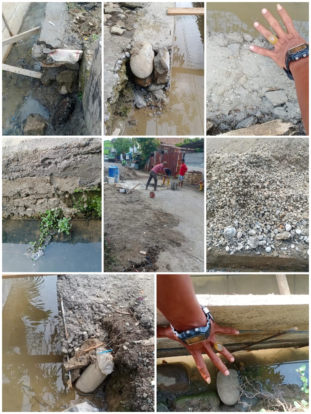 Diduga material yang digunakan tidak sesuai SPEK menggunakan Split Kotor bercampur tanah,diduga menggunakan split oplosan berukuran 2X3, 3X5 ,diduga coran diding diisi menggunakan batu dan sisa bekas pecahan beton lama/tembok ,diduga ketebalan dinding tidak sesuai SPEK,diduga menggunakan besi berukuran 8,diduga jarak besi berpariasi dan jarang-jarang dari 25 cm sampai 30 cm,45 cm,diduga dikerjakan asal-asalan terindikasi asal-asalan.