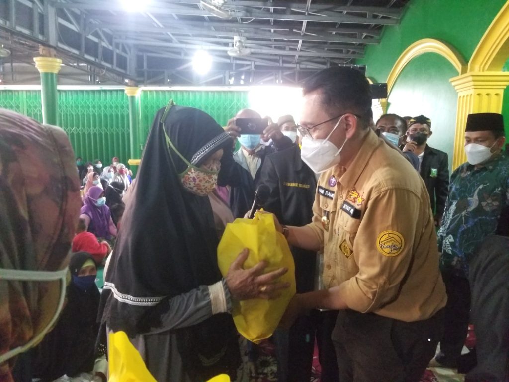 Penjabat Bupati Bekasi dan Ketua DPRD Bagikan Paket Sembako bagi Warga Terdampak PPKM Darurat di kediaman H. Amin Fauzi