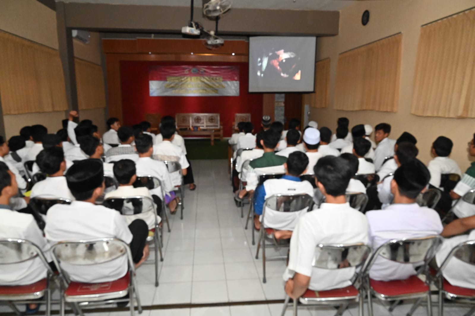 Sukoharjo (11/11/23) Dalam rangka peringatan Hari Pahlawan, Kodim 0726/Sukoharjo kembali melaksanakan kegiatan Wawasan Kebangsaan di Ponpes Al Mukmin, Ngruki Ds. Cemani Kec. Grogol, Kab. Sukoharjo. Kegiatan Wawasan Kebangsaan kali ini dilaksanakan dengan Nonton Bareng Film Perjuangan Janur Kuning yang digelar di Aula Ponpes Al Mukmin Dk. Ngruki, Jumat (10/11/23) pukul 20.30 Wib.