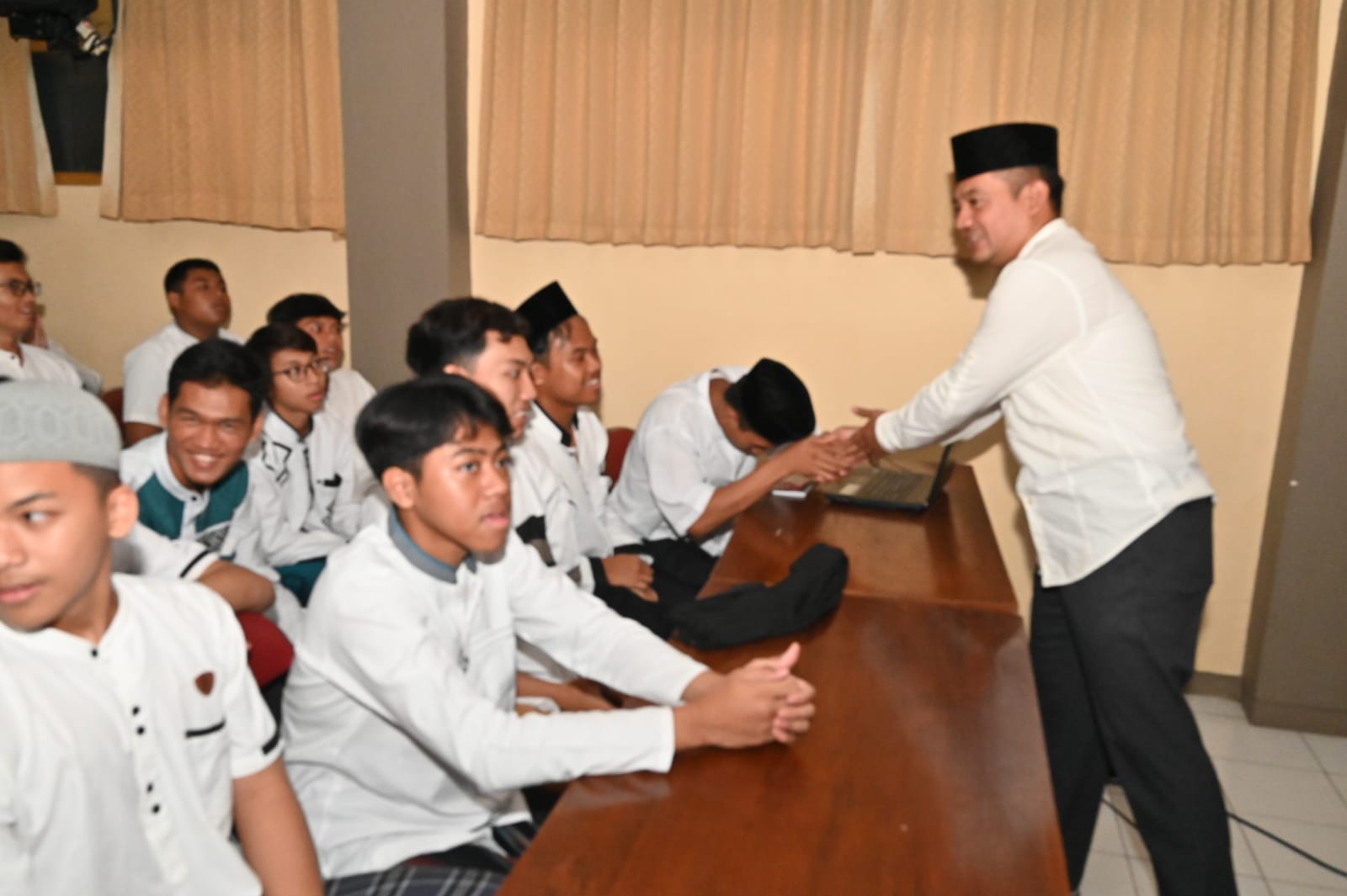 “Adik-adik semua keluar dari sini menjadi generasi-generasi yang membawa Islam menjadi jalur yang benar, tentunya pesan saya yang terakhir tetap jaga kesehatan, anda disini belajar di didik agar bisa membanggakan kedua orang tua,” tutup Kapolres.