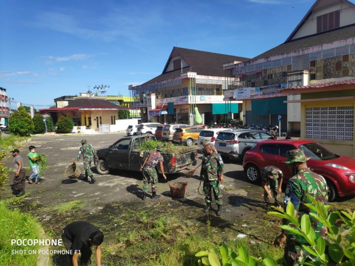 Kegiatan Denpom XII/1 Sintang bersama Dinas Kebersihan Pemerintah Daerah Kabupaten Sintang dan masyarakat sekitar Terminal Pasar Inpres Kabupaten Sintang pada hari Selasa tanggal 08 Juni 2021 pagi.