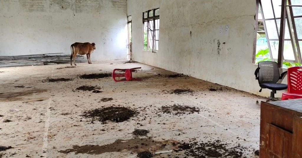 Dok: Gedung Balai Desa Matan Jaya, dijadikan kandang Sapi dan Kambing, taik sapi dan taik kambing dari halaman kantor Desa hingga sampai di dalam Gedung penuh taik sapi dan taik kambing.