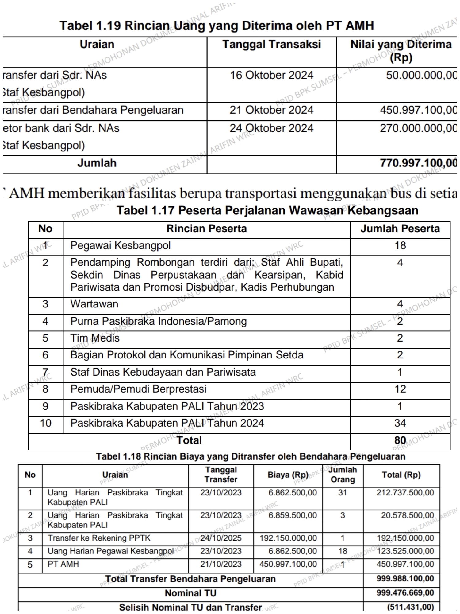 2) PT AMH menerima uang transfer dari Badan Kesbangpol sebesar Rp770.997.100,00 untuk biaya perjalanan dinas luar negeri dengan rincian sebagai berikut.