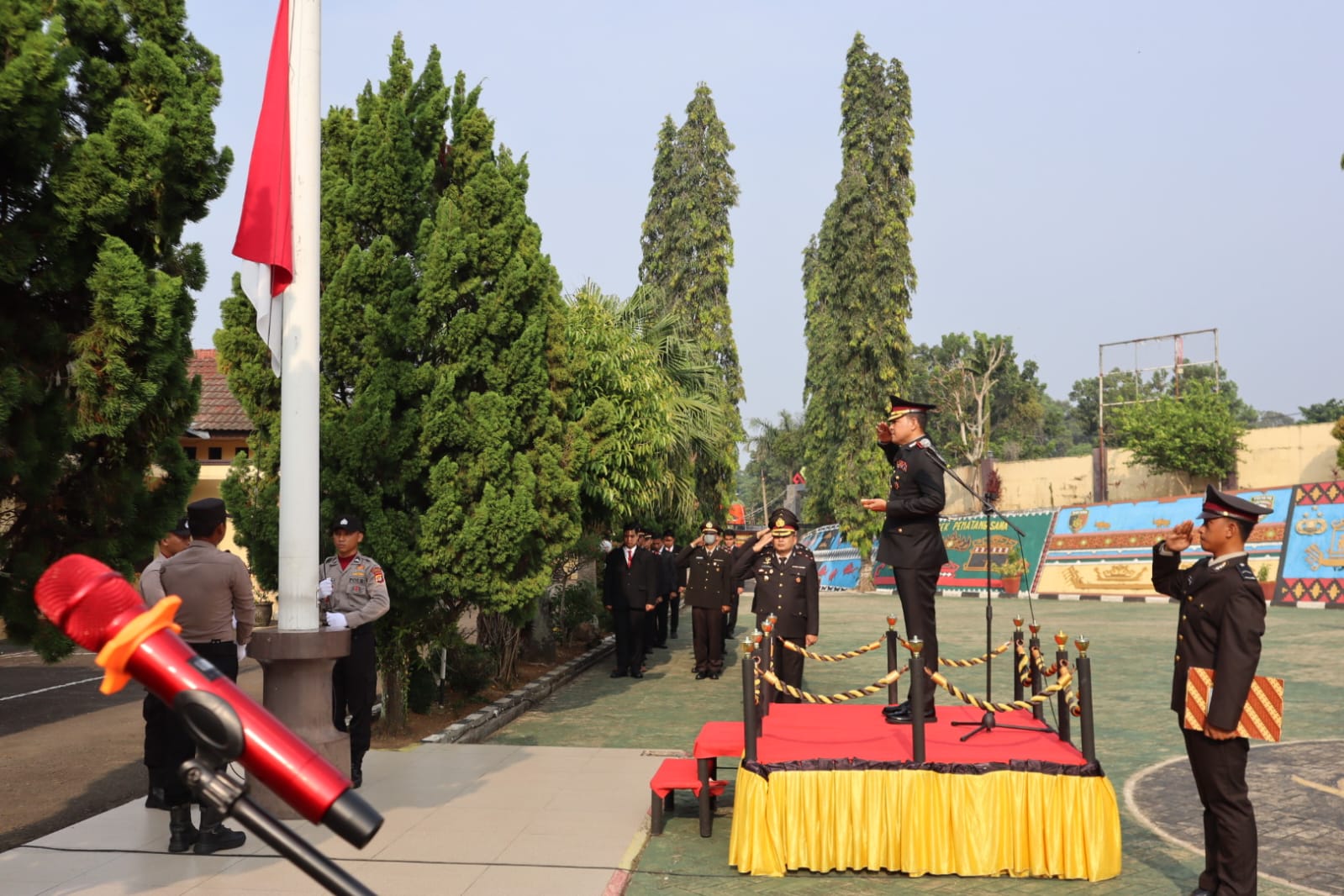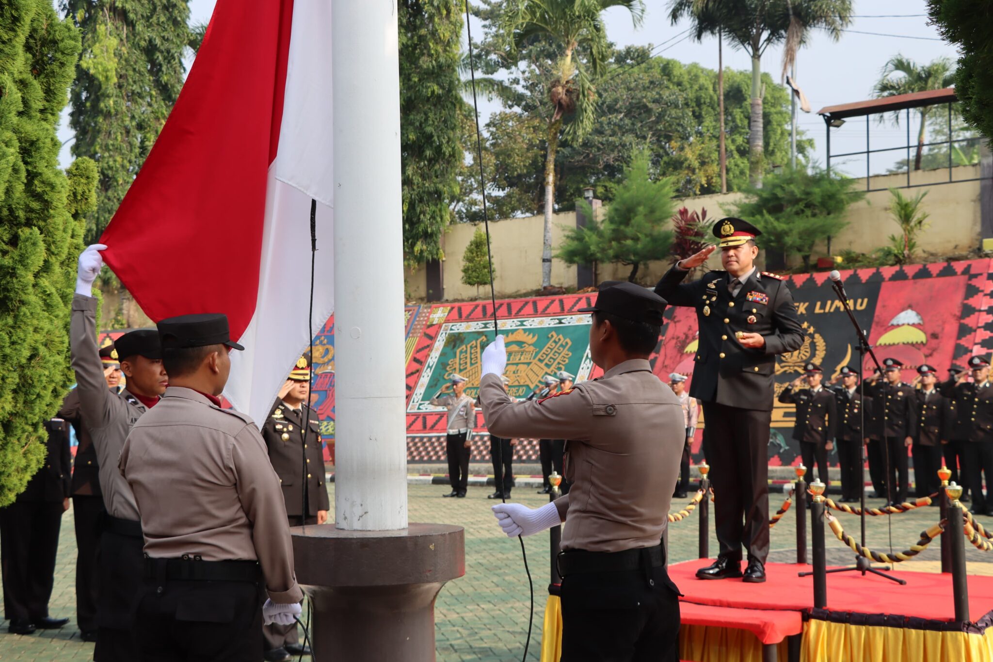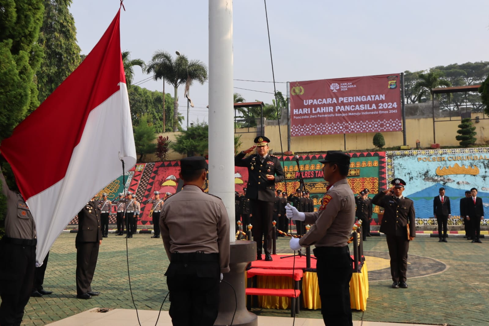 Upacara tersebut dipimpin oleh Kapolres Tanggamus, AKBP Rinaldo Aser, SH. SIK. M.Si. dilaksanakan di halaman Mapolres Tanggamus, Sabtu 1 Juni 2024 dihadiri oleh para pejabat utama, para Kapolsek jajaran, personil Polres, ASN dan anggota Polsek jajaran.