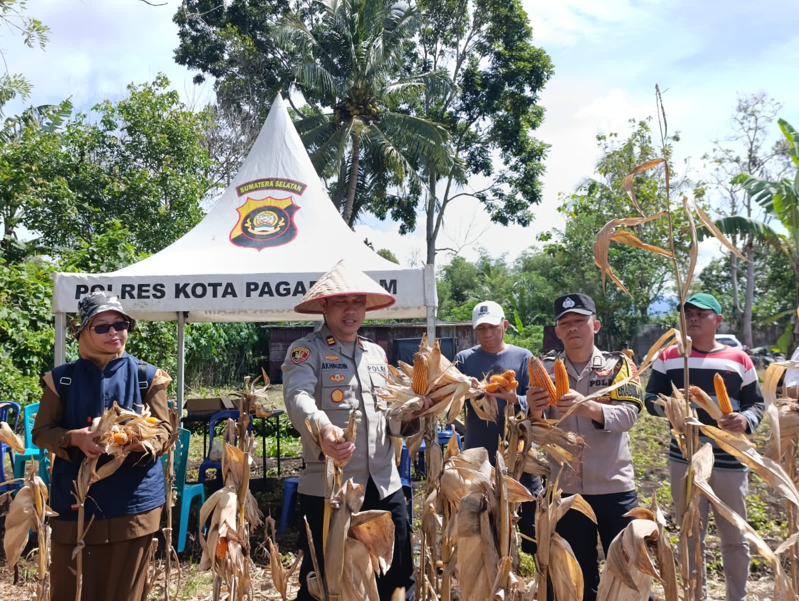 Polsek Pagar Alam Utara Monitoring Lahan dan Panen Jagung Dukung Program Ketahanan Pangan