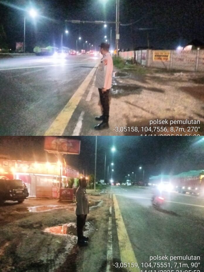 Ogan ilir – Polsek Pemulutan, Polres Ogan Ilir, melaksanakan kegiatan patroli malam pada Jumat (14/11/2025) sekitar pukul 21.00 WIB di sejumlah titik rawan kejahatan dan kerawanan kamtibmas. Patroli ini merupakan langkah preventif dalam mengantisipasi terjadinya aksi 3C (Curat, Curas, Curanmor) serta berbagai bentuk kriminalitas lainnya di wilayah hukum Polsek Pemulutan.
