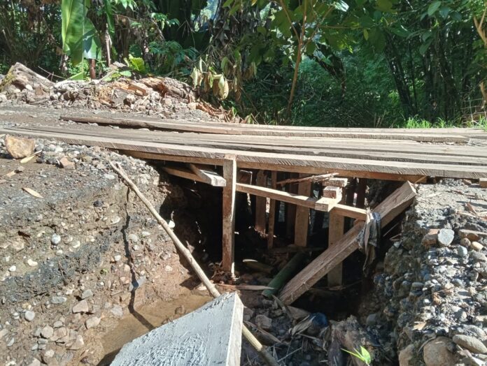 Di lapangan, jalan aspal yang sudah diputus hanya dibuat jembatan darurat yang terbuat dari papan seadanya itupun hanya sebagian jalan saja, masyarakat pengguna jalan menjadi was-was melintas karena sebelumnya sudah ada 3 mobil yang terperosok di titik pekerjaan tersebut, tidak hanya itu mobil dengan muatan berat seperti mobil pengangkut bantuan beraspun tidak bisa melintas karena was-was jembatan ambruk.