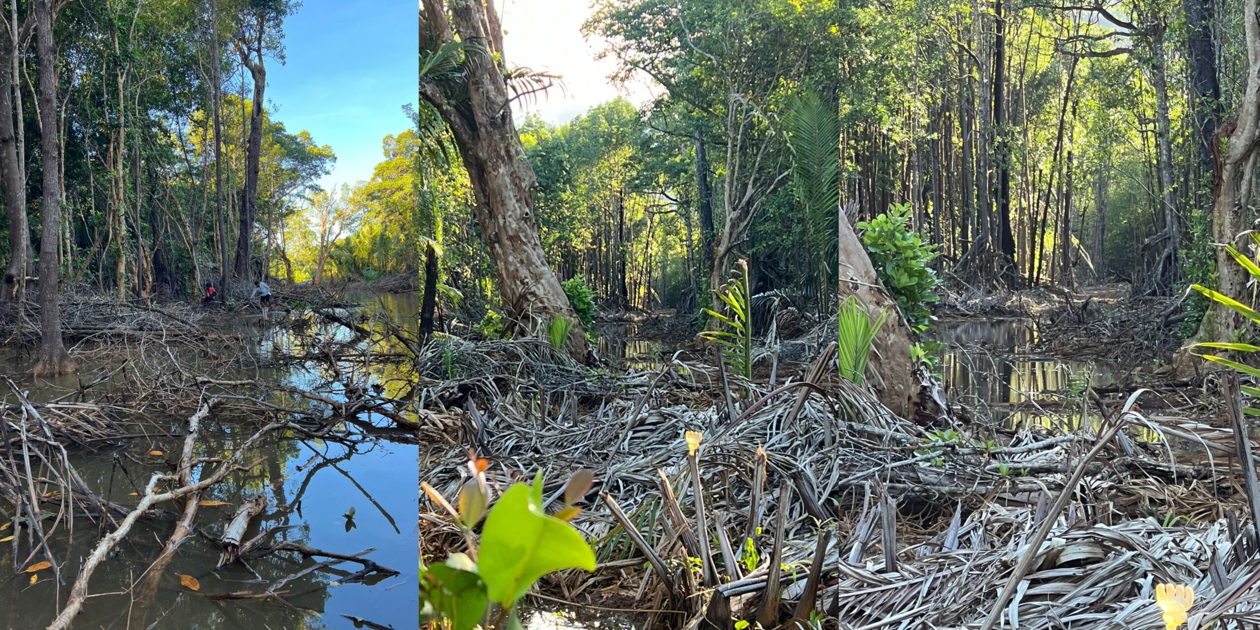 Kegiatan tersebut dilakukan menggunakan alat berat jenis ekskavator, yang secara langsung mengakibatkan pencabutan akar mangrove, pengrusakan substrat lumpur, hilangnya tegakan mangrove dewasa, perubahan struktur habitat pesisir. Selain itu, aktivitas ini memenuhi unsur pengrusakan kawasan lindung sebagaimana diatur dalam peraturan nasional.