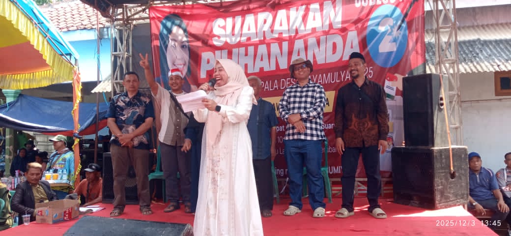 SORANA. CO. ID, Indramayu- Rabu 3 Desember 2025 — Panitia Pemilihan Kuwu Desa Jayamulya terus melaksanakan tahapan penyelenggaraan pemilihan secara tertib dan terjadwal. Pada hari ini, Rabu (03/12), agenda kampanye terbuka dilaksanakan oleh calon kuwu nomor urut 2 Tati Sumiyati, bertempat di halaman kediamannya. Kegiatan berlangsung meriah dan tertib dengan dihadiri oleh berbagai unsur pemerintahan serta masyarakat luas.