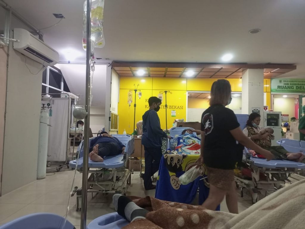 RSUD Cibitung kabupaten Bekasi , pada tanggal 19 /05/202. pada saat hujan gedung RSUD Gedung tersebut banyak yang bocor dan berserakan ember di setiap lantai RSUD Cibitung. dan pada saat ini tanggal 24/04/2022. terlihat RSUD ruangan IGD dalam. renopasi .