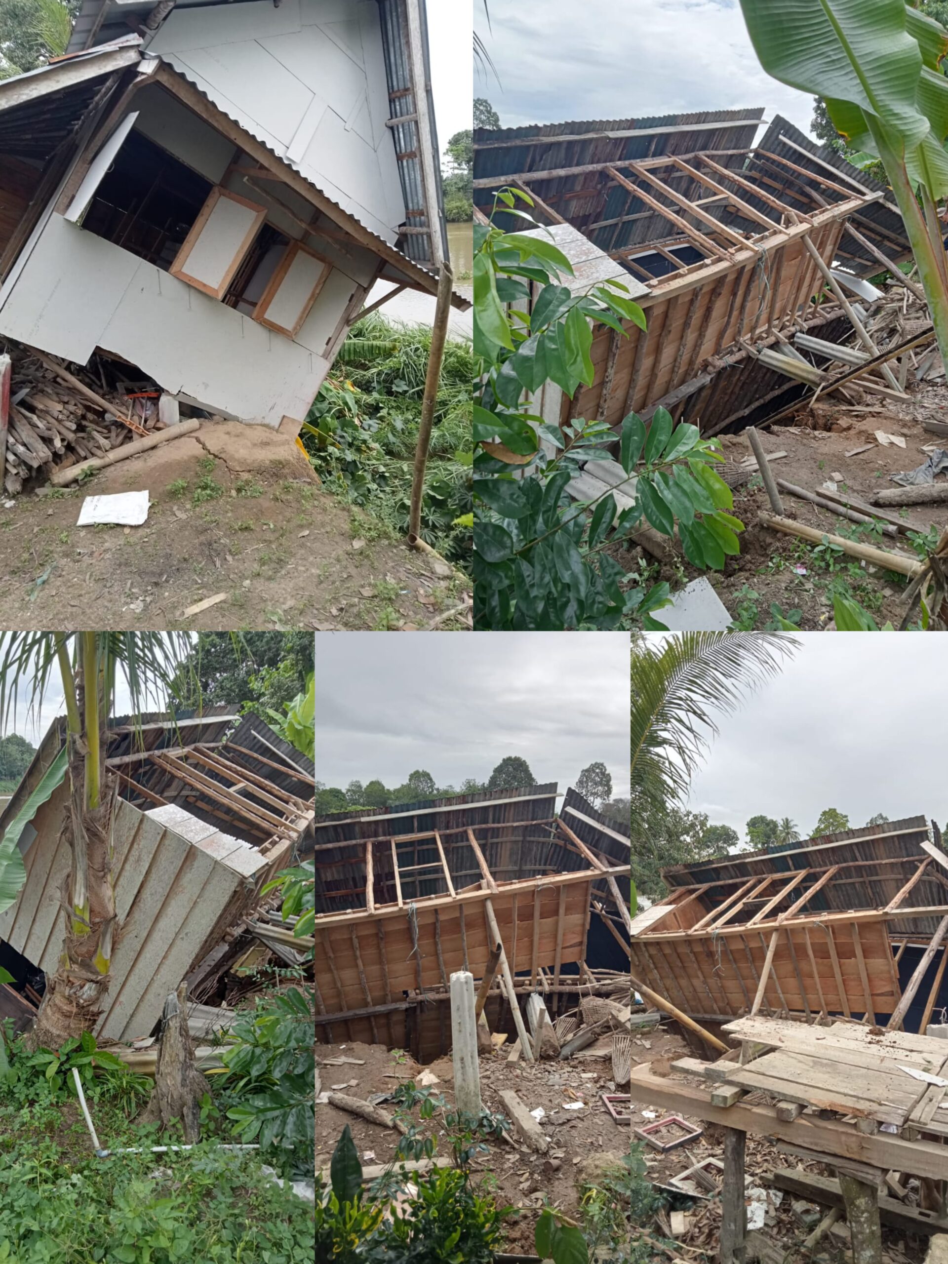 * Rumah Panggung Milik Mar (60) yang terletak di Dusun 1 Desa Jagalano Kecamatan Rantau Panjang Kabupaten Ogan Ilir, Ambruk Kesungai Ogan, Akibat tebing di pinggir sungai Longsor.
