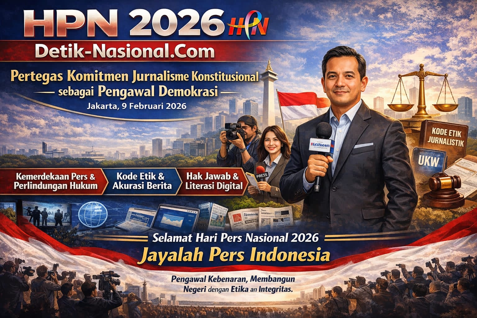 JAKARTA, WWW.DETIK-NASIONAL.COM – Menyongsong peringatan Hari Pers Nasional (HPN) 2026 pada 9 Februari mendatang, redaksi Detik-Nasional.Com menyatakan komitmennya untuk tetap tegak lurus pada fungsi pers sebagai pilar keempat demokrasi. Di tengah disrupsi informasi, momentum ini bukan sekadar seremonial, melainkan penguatan kembali marwah profesi jurnalis yang berlandaskan hukum.