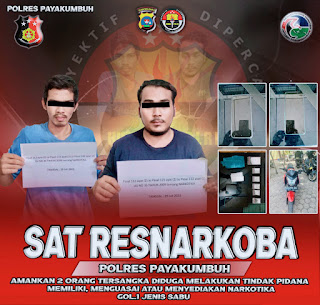 Saat ini kedua tersangka dan barang bukti berupa enam paket narkotika jenis sabu, dua unit handphone serta satu unit sepeda motor merk Honda CB 150 R sudah di amankan di Mapolres Payakumbuh untuk penyidikan lebih lanjut, tutup Aiga.