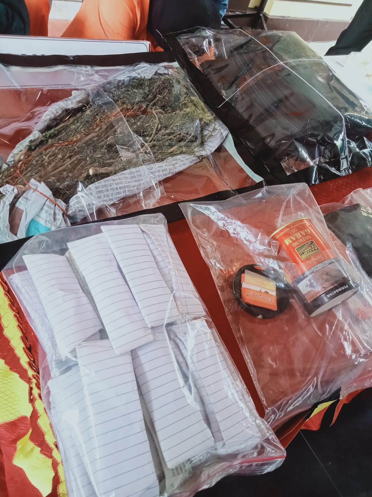 “Dari hasil penggeledahan, kami menemukan barang bukti berupa satu buah tas hitam yang berisi satu paket besar dan 28 paket kecil ganja, satu kaleng rokok yang berisi ganja, satu bal kertas Papir, satu unit Handphone, satu buah Dompet yang berisi uang tunai, dan satu Unit sepeda motor. Barang bukti tersebut diakui oleh pelaku sebagai miliknya,” ujar Kapolres.