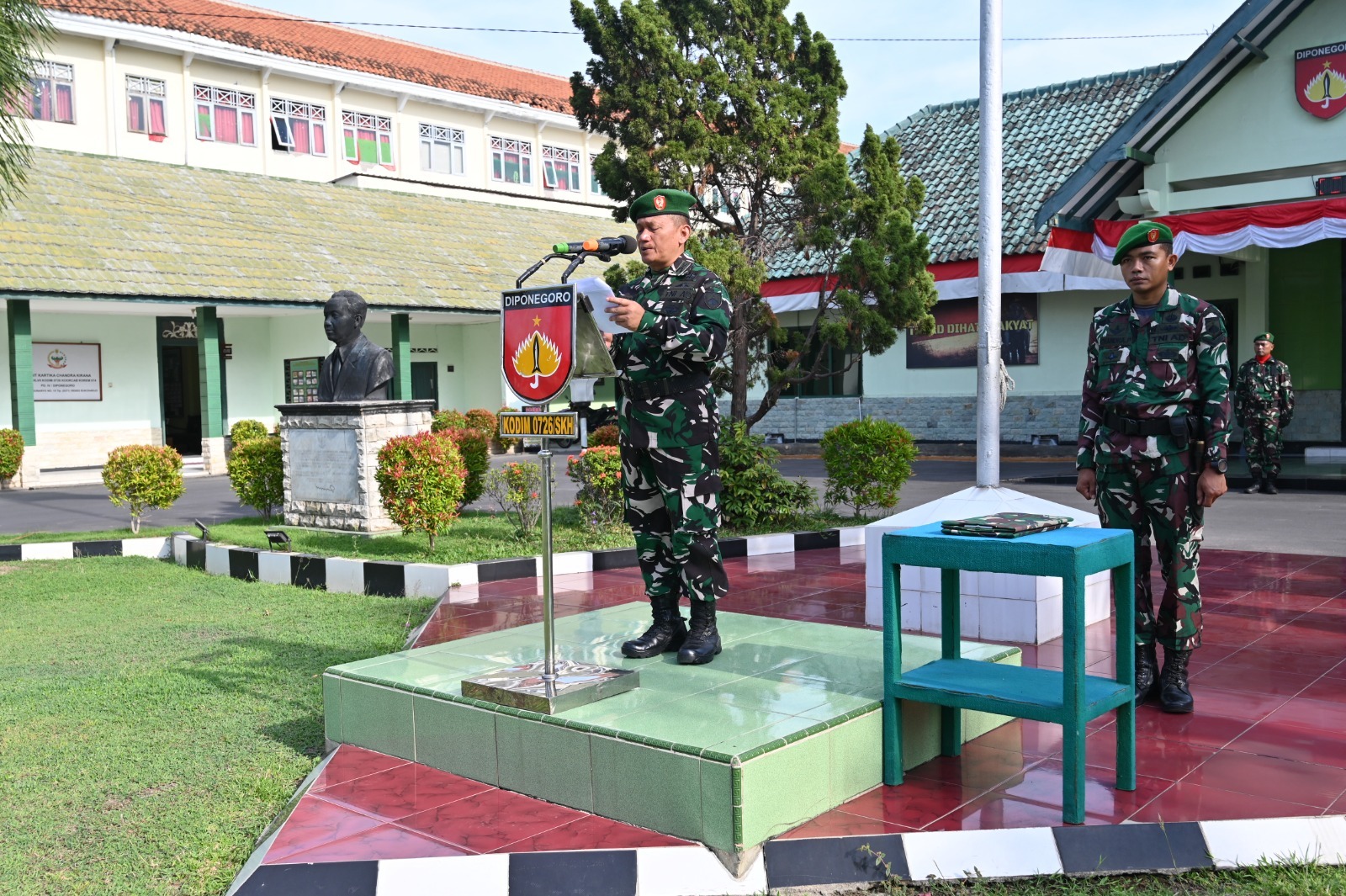 Membacakan amanat Kepala Staf Angkatan Darat Jenderal TNI Agus Subiyanto, S.E., M.Si Kasdim menyampaikan agar prajurit TNI AD tidak terjebak dalam politik praktis dan terseret kepentingan pribadi, kelompok dan golongan tertentu, tetap jaga netralitas ditengah memasuki tahun politik seperti sekarang ini.