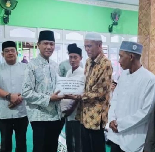 Wakil Bupati Ketapang H. Farhan, SE.,M.Si menyerahkan bantuan Beras kepada pengurus rumah Ibadah dan lembaga kemasyarakatan di Kecamatan Matan Hilir Utara, pada Sabtu (30/03/24).