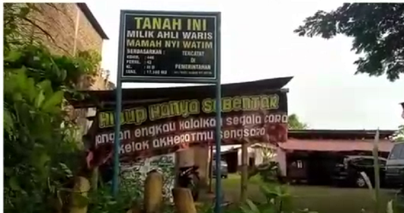 Namun ahli waris Mamah Ny Watim selalu mendapatkan teror eksekusi dari pihak lain yang mengklaim sudah membeli dengan cara lelang, serta ahli waris Mamah Ny Watim dilaporkan ke pihak Kepolisian dengan tuduhan penyerebotan tanah. Pelaporan mengenai ahli waris Mamah Ny Watim melakukan penyerobotan tanah adalah untuk yang ke tiga kalinya. Untuk pelaporan yang pertama dan ke dua sudah diberhentikan pemeriksaannya dengan pelapor yang sama. Dan pelaporan yang ke tiga beda nama pelapornya akan tetapi dalam perkara yang sama mengenai penyerobotan tanah.